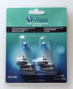 Nord yada 902138H27/2(881) 12V 27W АВТОЛАМПА NORD YADA CLEAR (NEW БЛИСТЕР К-Т: 2 ШТ)