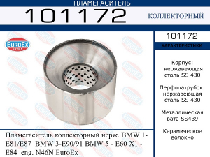 Euroex 101172пламегаситель коллекторный нерж.!\ BMW E81/E87/E90/E91/E60/E84 N46N