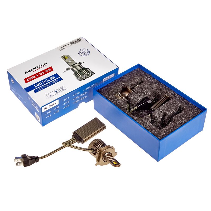 Наименование: Лампа светодиодная LED Avantech H4 12V 45W, 3000К 4500lm (комплект 2 шт.)