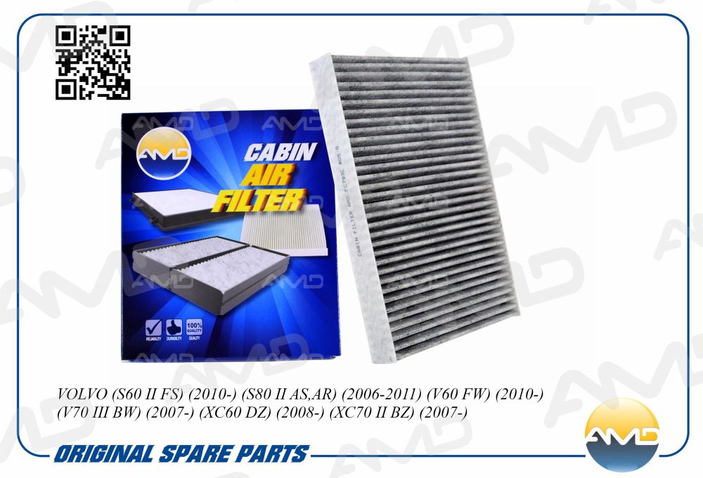 Фильтр салонный (угольный) VOLVO S60 II FS, 2010-, S80 II AS,AR, 2006-2011, V60 FW, 2010-, V70 III BW, 2007-, XC60 DZ, 2008-, XC70 II BZ, 2007- AMDFC793C