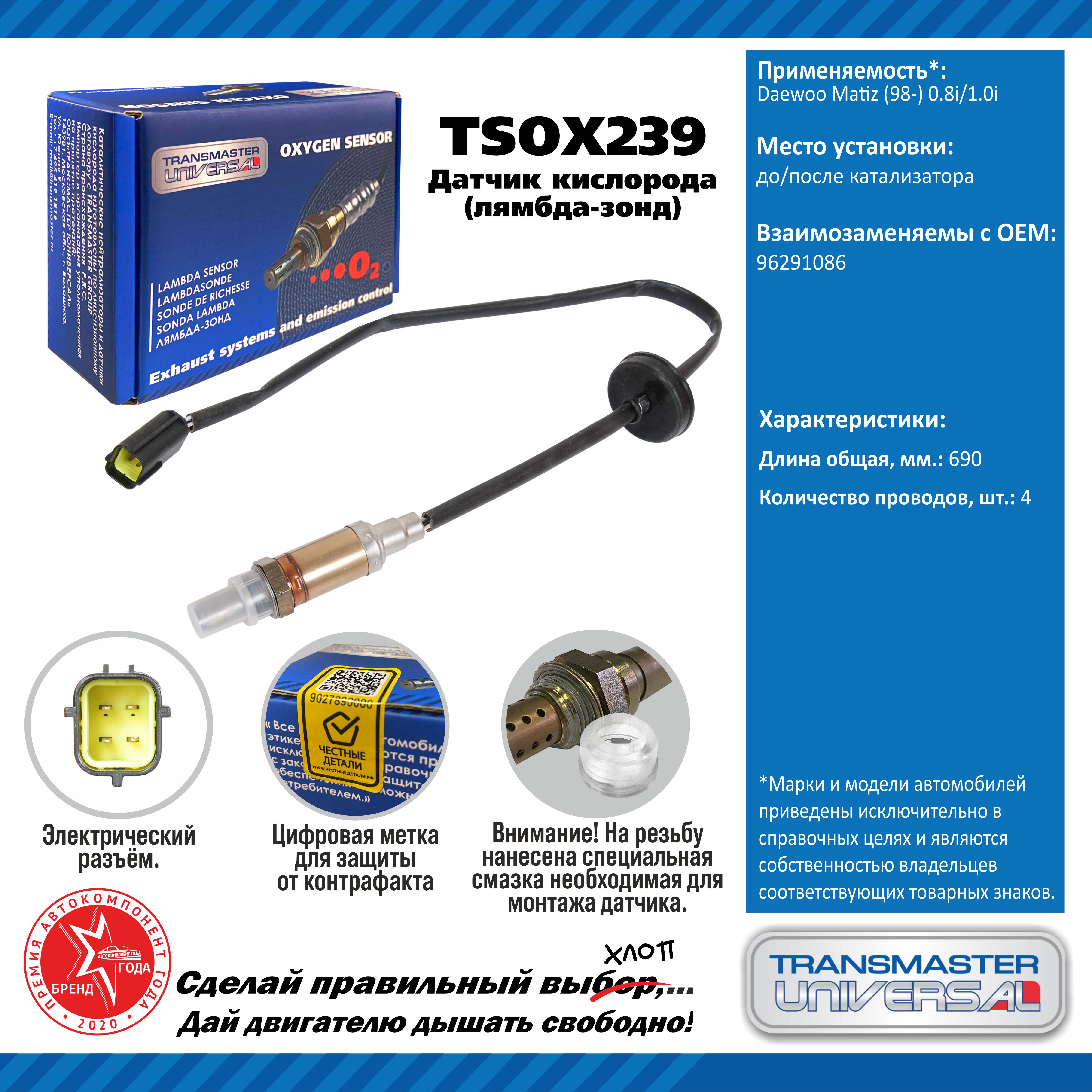 Наименование: Лямбда-зонд DAEWOO MATIZ TRANSMASTER до/после кат. 98- 0.8i/1.0i