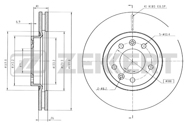 Наименование:Диск тормозной Peugeot 407 04-, 508 10-, 607 01- передний вентилируемый 282,8 х 26 Zekkert