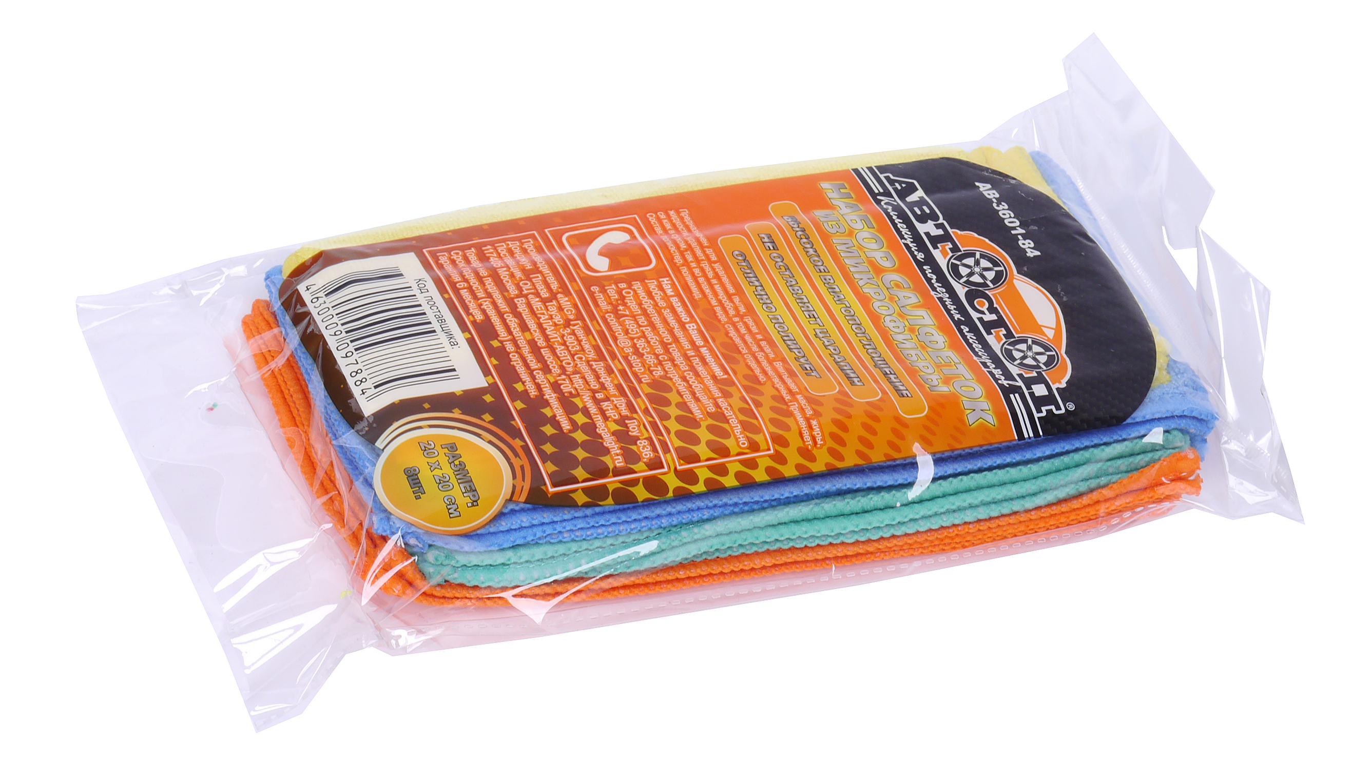 Наименование:Салфетка микрофибра универсальная 20х20см (8шт.) АВТОСТОП
