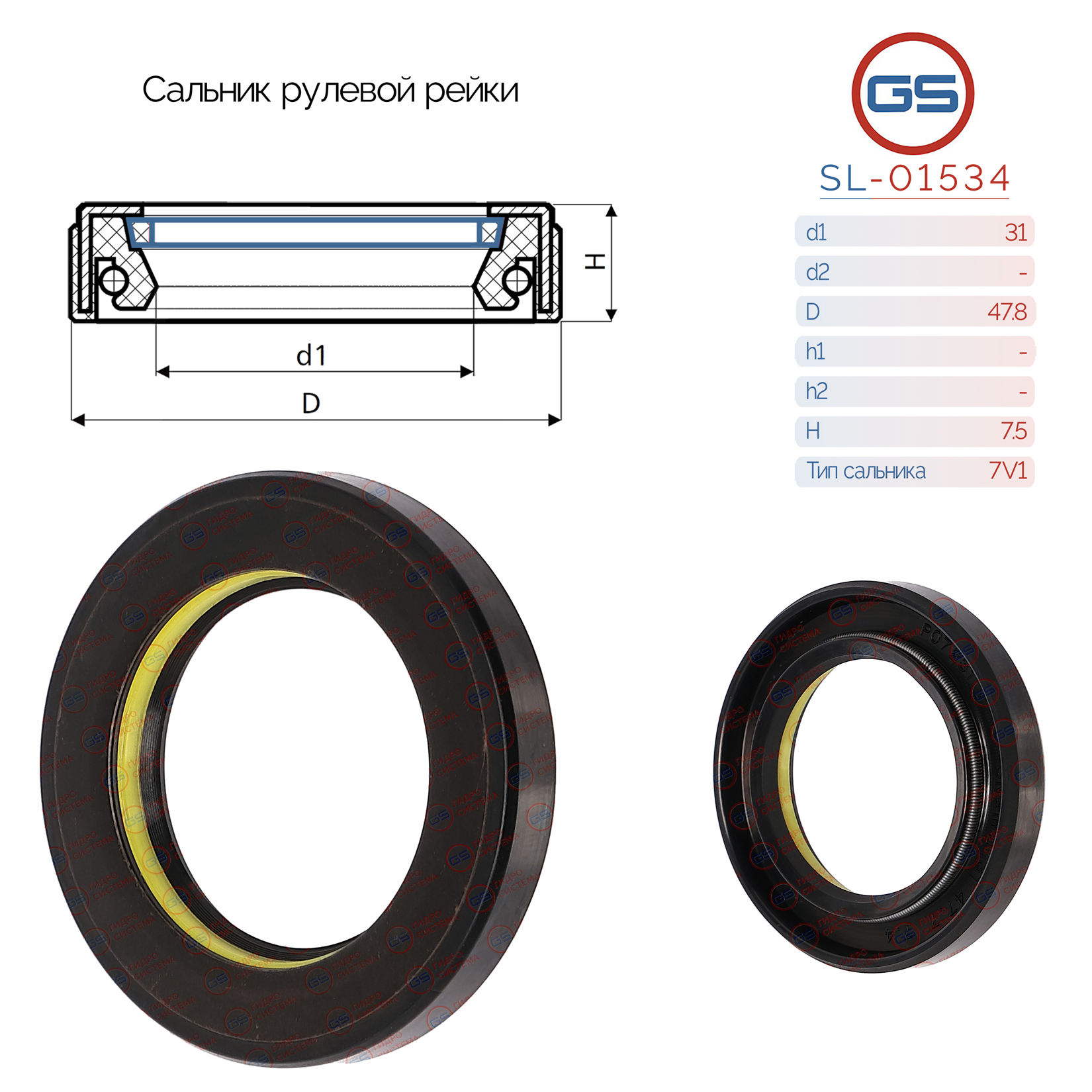 Сальник рулевой рейки 31x47.8x7.5 (7V1)