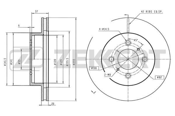 Диск тормозной Toyota Echo (P10) 99-, Yaris Verso (P20) 99- передний вентилируемый 254,75 х 20 Zekke