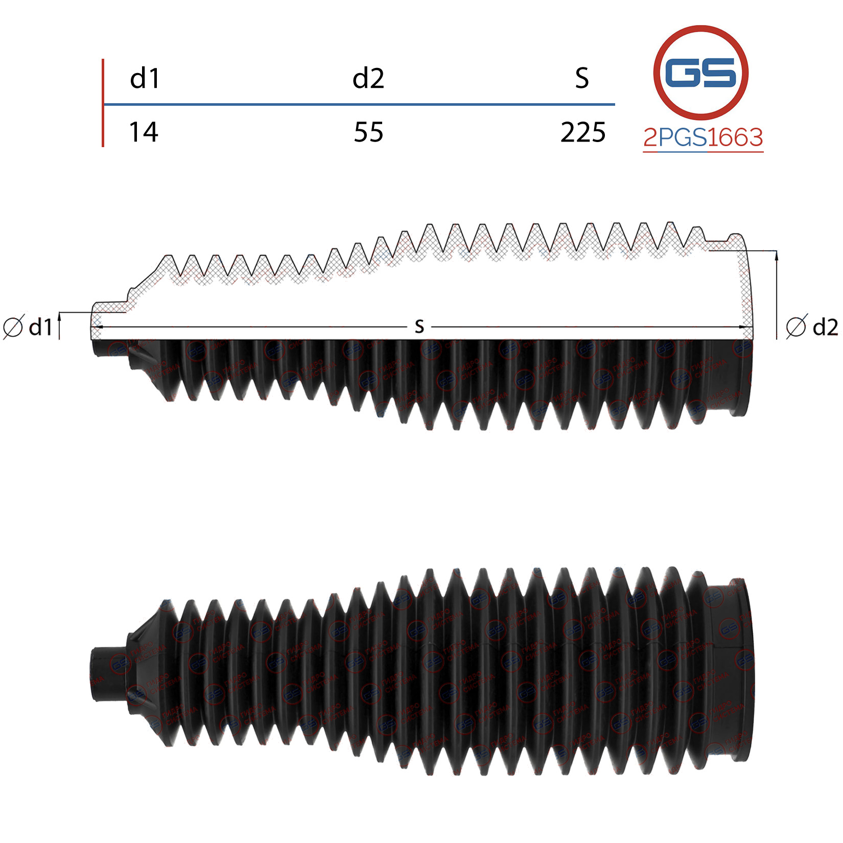 Наименование: Пыльник рулевой рейки размер: 14x55x225