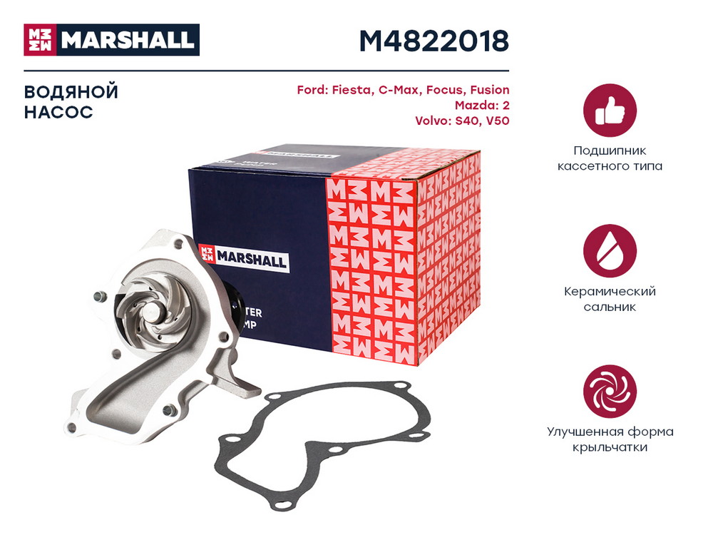 Помпа водяная Ford C-Max I 03- Focus I II 98- Mazda 2 I 05- Volvo S40 II 04- V50 I 04- M4822018