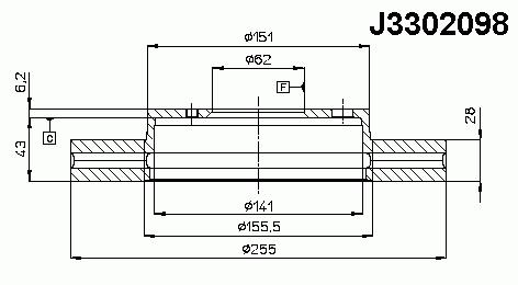 Диск тормозной J3302098 (43512-33020/BG3177/MDC1015/DF1430)