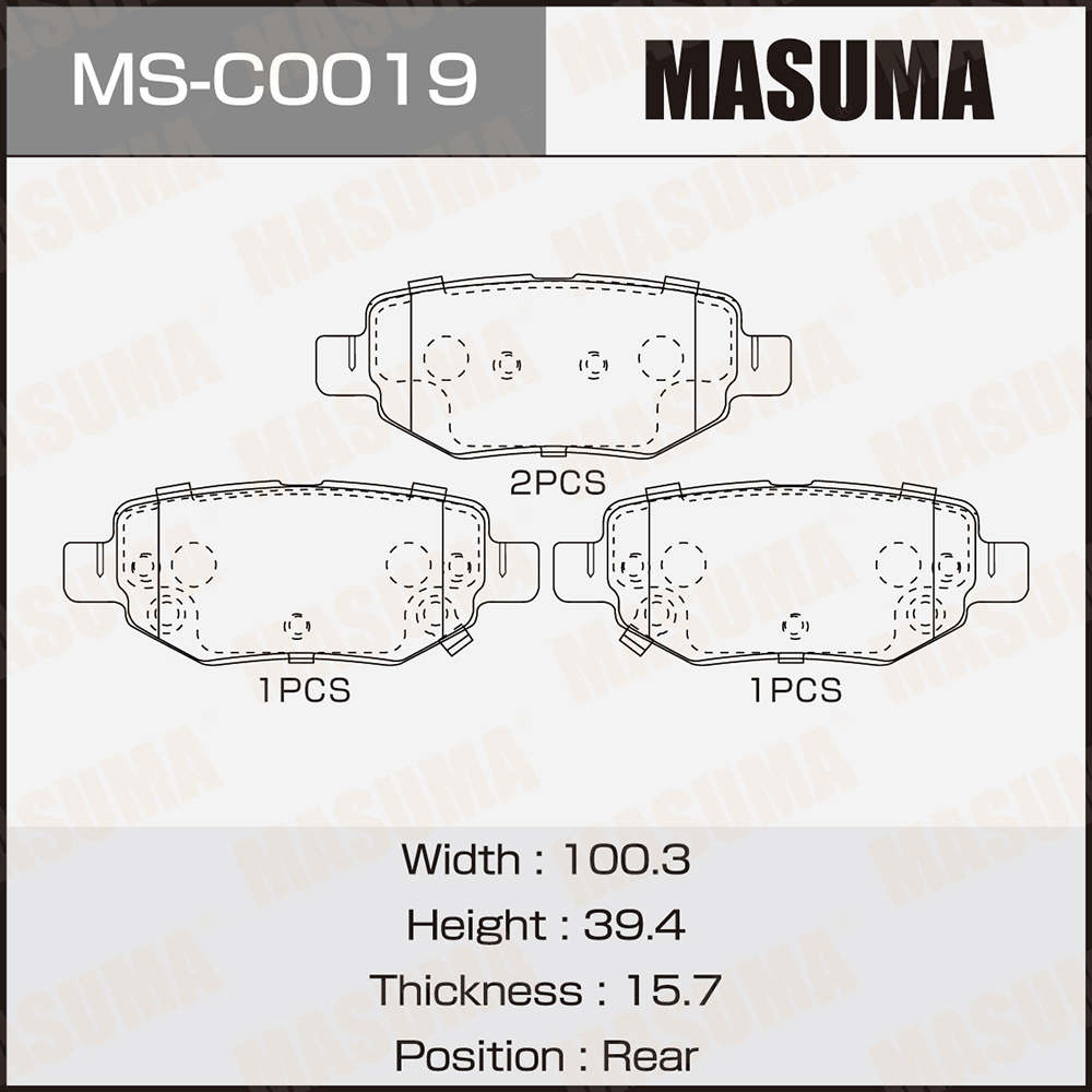 Наименование: Колодки дисковые 'MASUMA' MS-C0019 / P20001 / rear