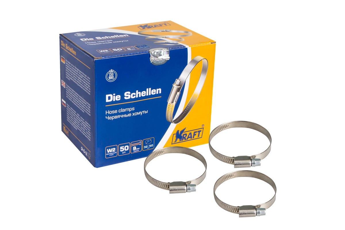 Хомут 32-50 мм (нержавеющая сталь). KT 880407 'KRAFT'