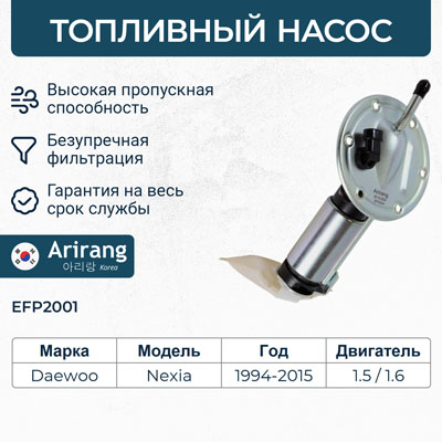 Наименование:EFP2001 ARIRANG Насос топливный в сборе DW Nexia, Espero 1.5DOHC