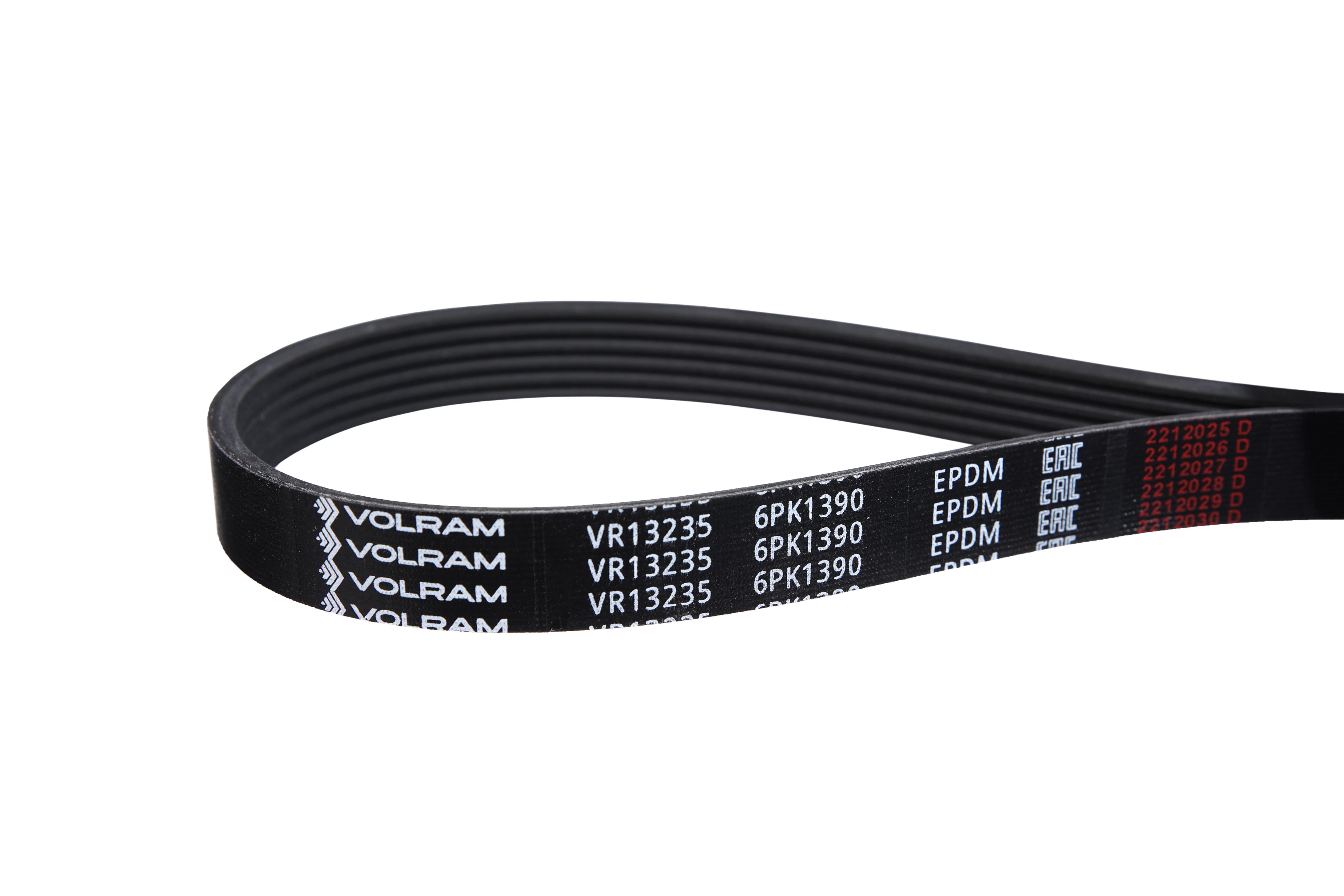 ремень VOLRAM поликлиновой 6PK1390 для а/м ГАЗ ГАЗЕЛЬ, СОБОЛЬ дв. ЗМЗ-405, 406 VR13235