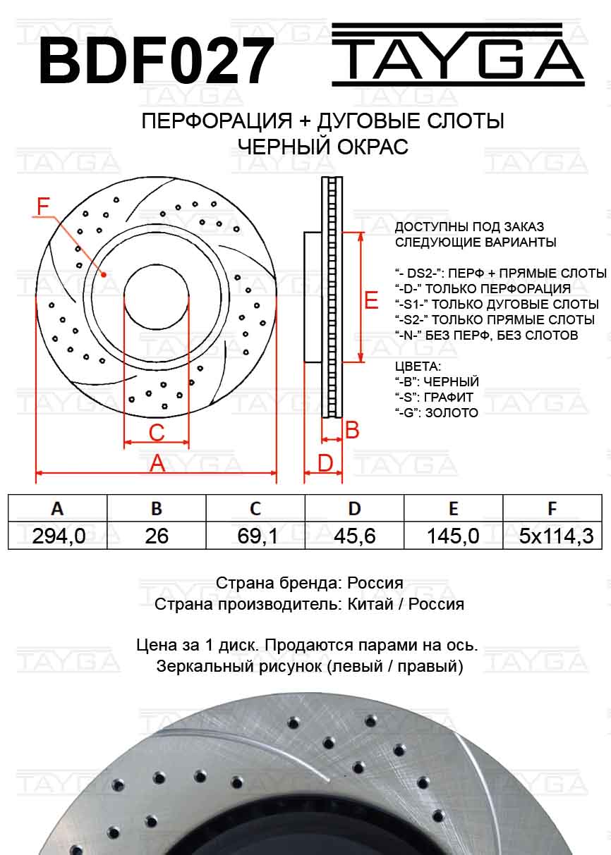 Наименование: Диск тормозной MITSUBISHI L200 (10-),Outlander (06-12) передний перфорированный комплект TAYGA