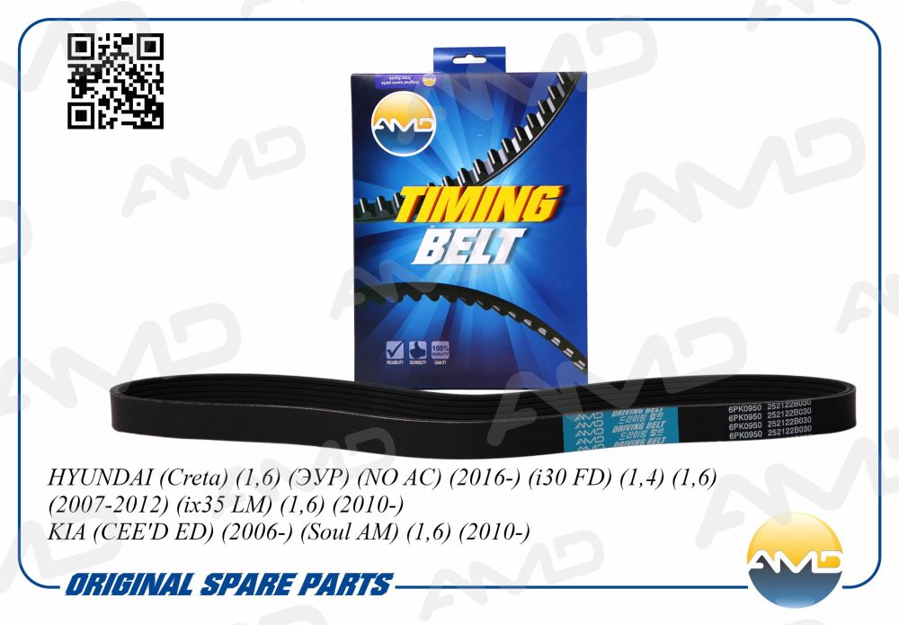 Наименование: Ремень поликлиновой генератора HYUNDAI Creta, 1,6, ЭУР, NO AC, 2016-, i30 FD, 1,4, 1,6, 2007-2012, ix35 LM, 1,6, 2010-, KIA CEE'D ED, 2006-, Soul AM, 1,6, 2010- AMDBL166