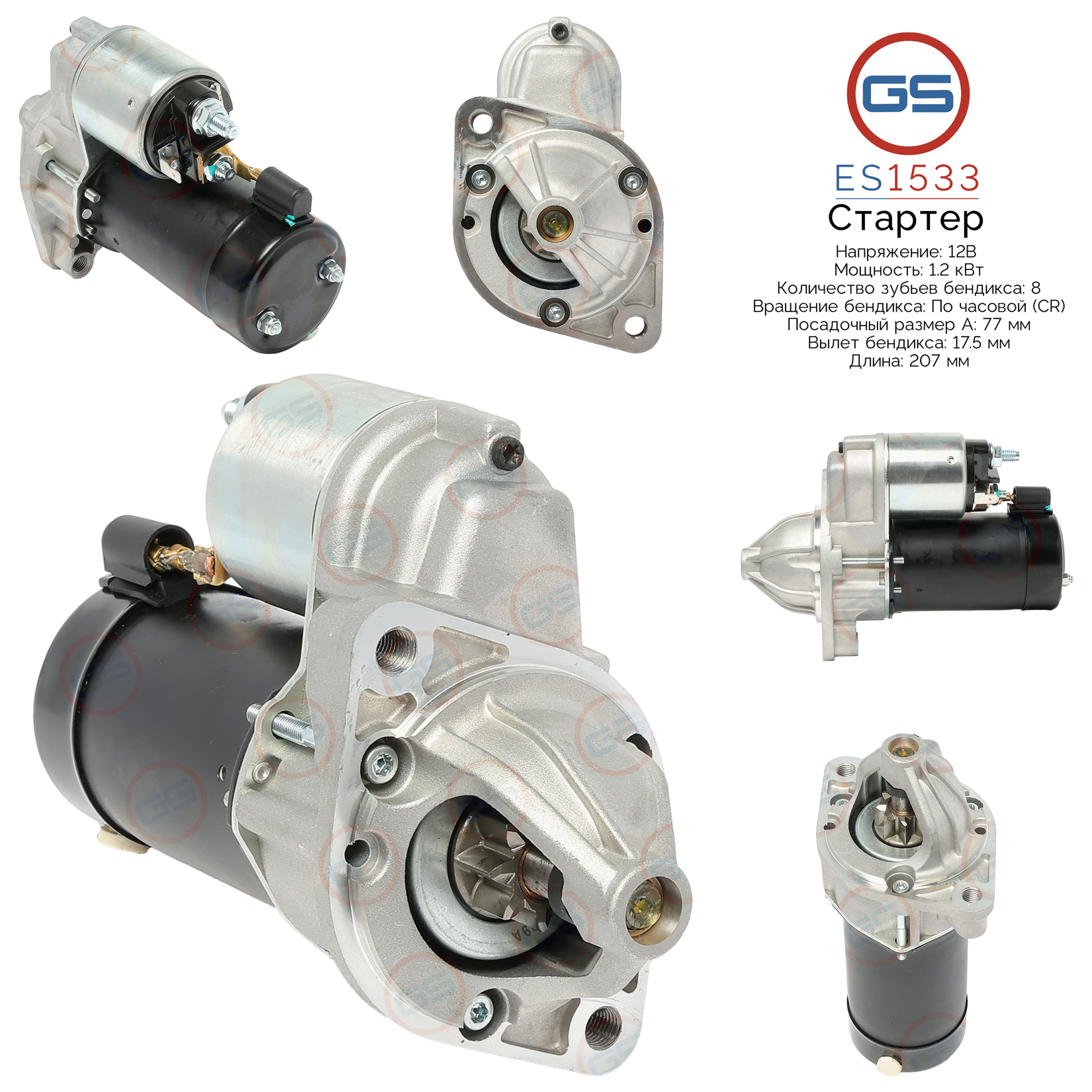 Наименование: Стартер 12В, 1.2 кВт, pcs 8, CR - Hyundai, Kia, Mitsubishi