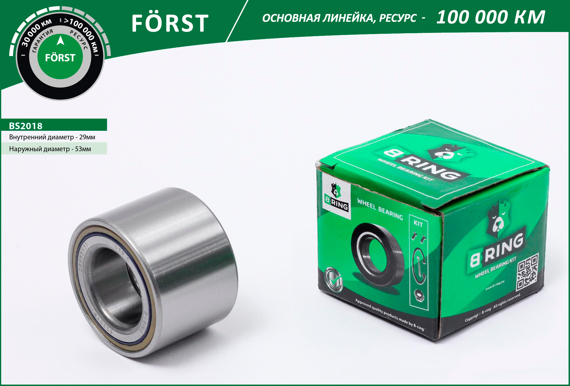 Наименование: Подшипник ступицы FORD Focus (98-) (задн.) (29x53x37) (BS2018) B-RING FORST