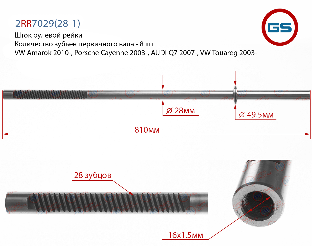 Наименование: Шток рулевой рейки VW Touareg (7LA, 7L6, 7L7) 2003-, AUDI Q7 (4L) 2007-, Porsche Cayenne (955) 2003-