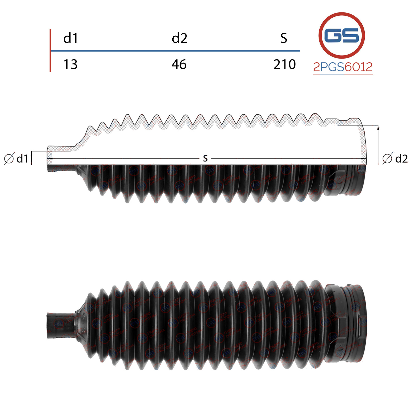 Наименование: Пыльник рулевой рейки размер: 13x46x210