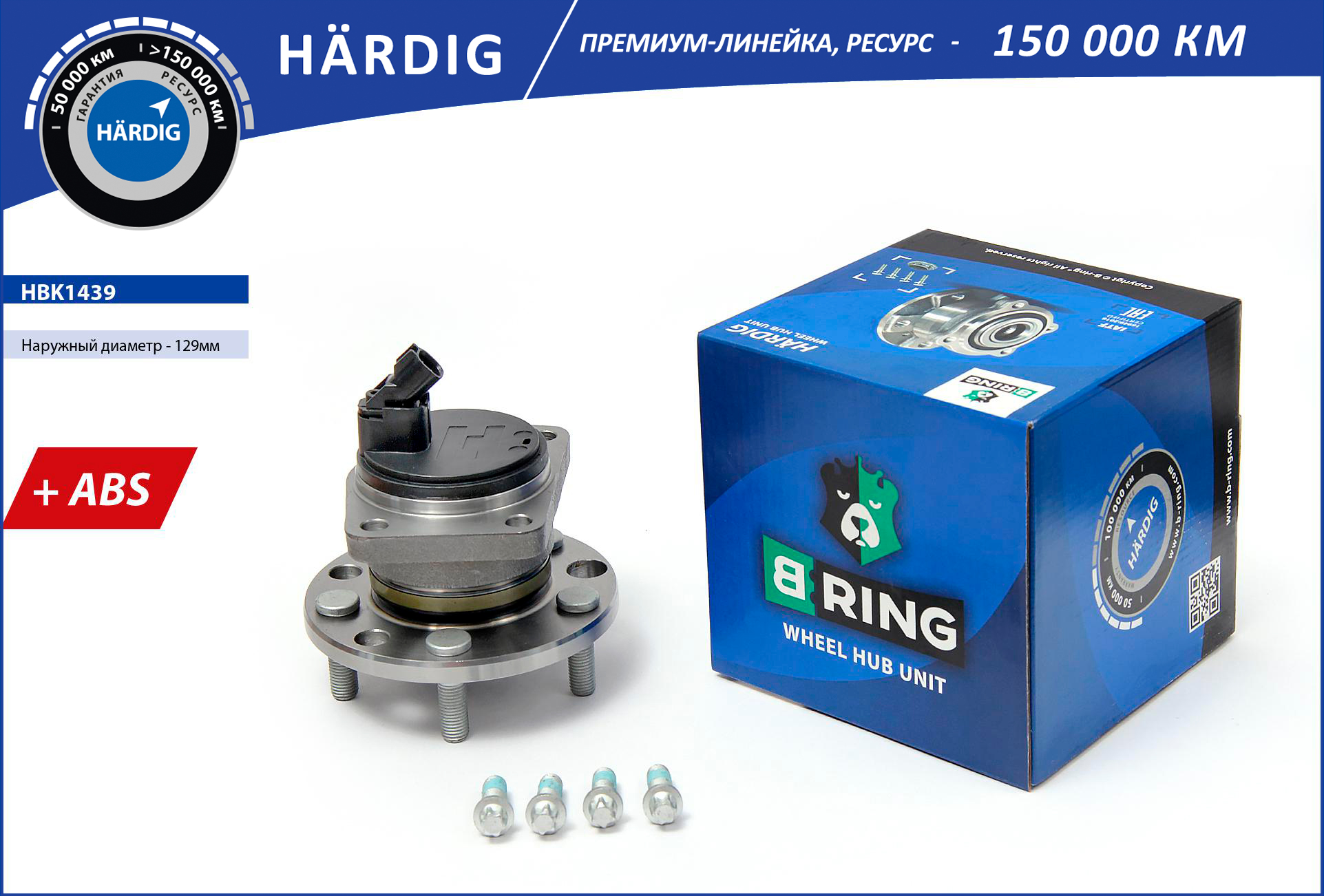 Наименование: Ступица с подшип. в сборе FORD Mondeo III (00-) (задн.) (d=129 с ABS) (HBK1439) B-RING HARDIG