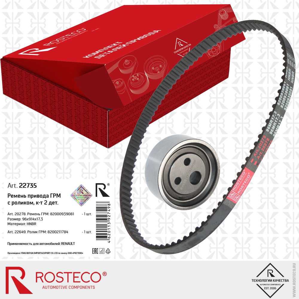 Наименование: Ремкомплект ГРМ RENAULT, NISSAN, (ремень+ролик). 7701477024 'ROSTECO'