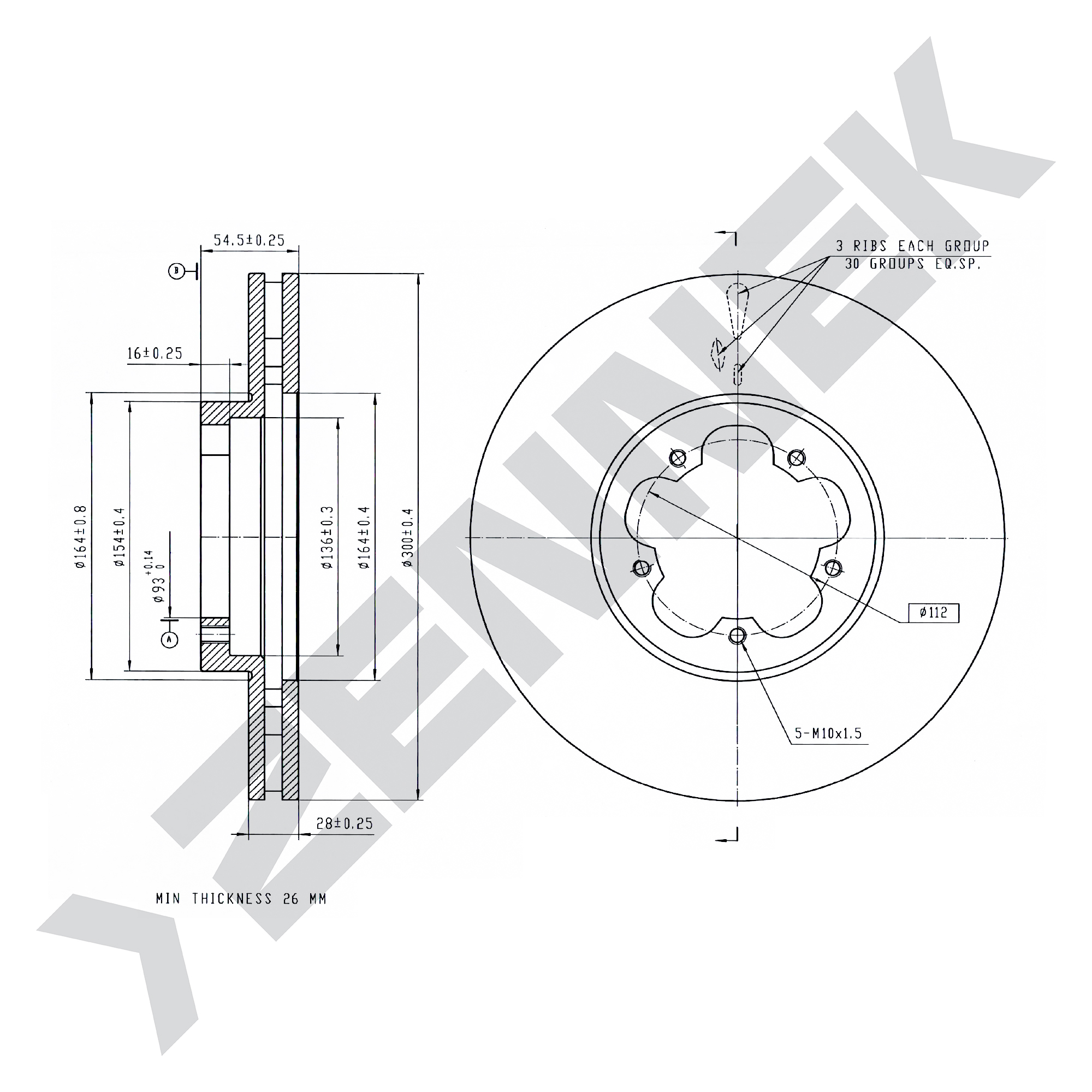 Диск тормозной передний FORD TRANSIT 06> 300мм, крепление диска болт M12