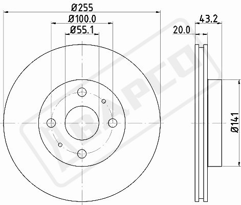 Наименование: Диск тормозной TOYOTA YARIS 1.0-1.5 99- передний D=255мм.
