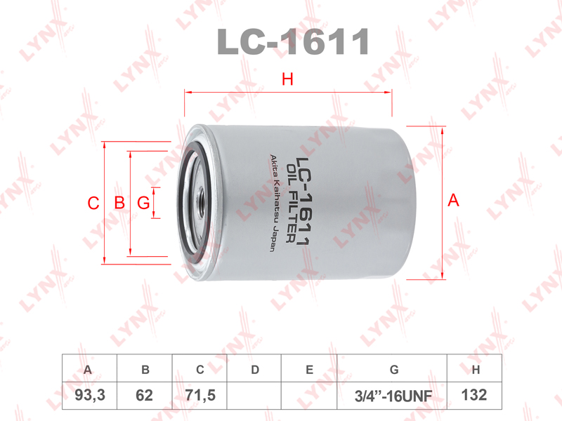 Наименование:LC-1611 Фильтр масляный LYNXauto