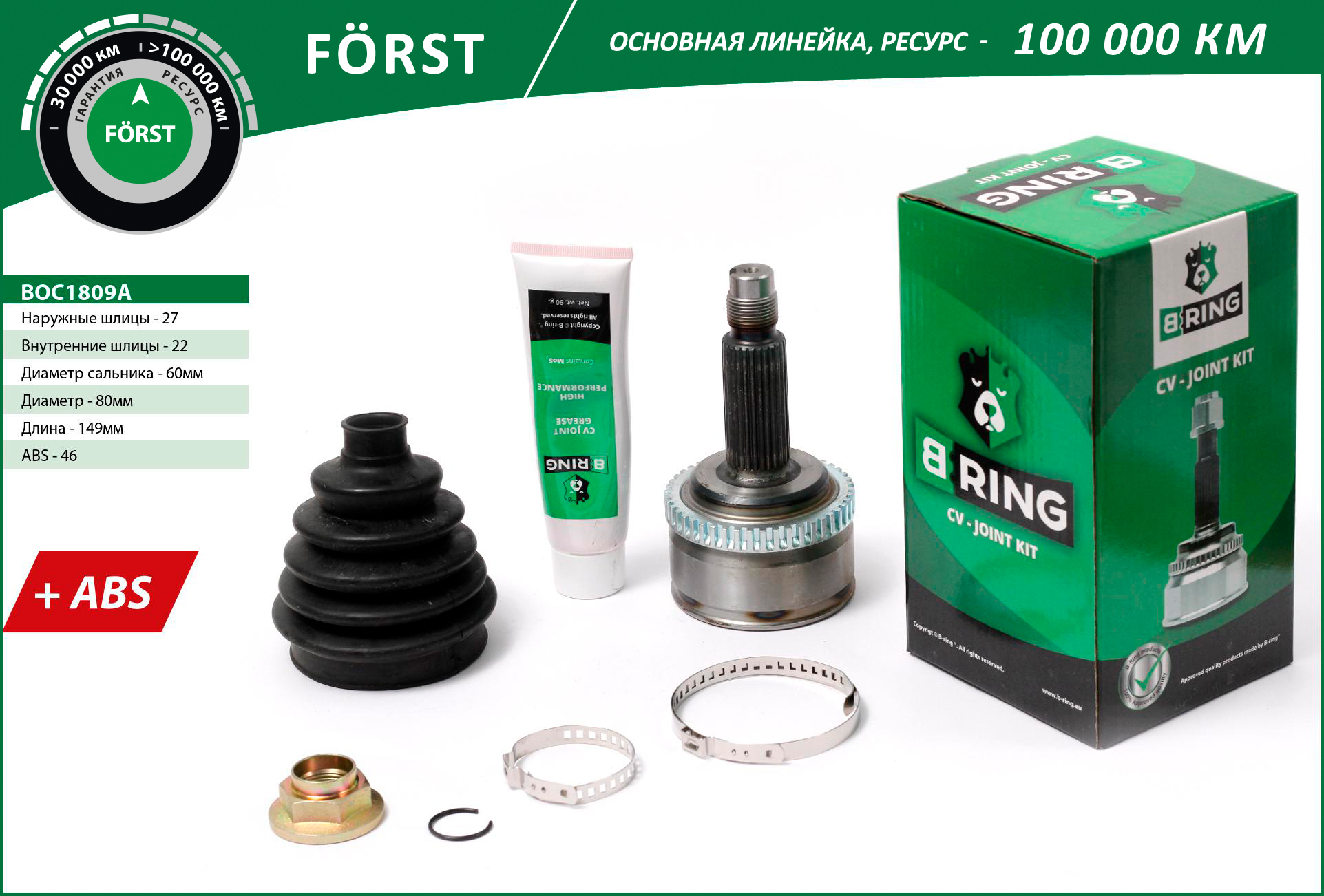 Шрус KIA Cee`d (06-), HYUNDAI i30 (06-) (наруж.) (с ABS, 27/22) (BOC1809A) B-RING FORST