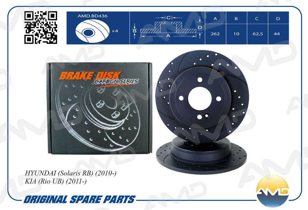 Наименование:Диск заднего тормоза (к-т 2шт.) 58411-0U300/AMD.BD436 (CARBON SERIES)