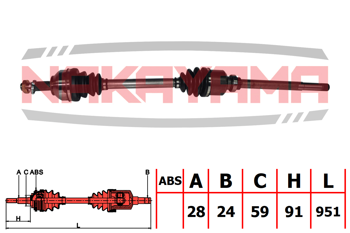 Вал приводной, перед. правый PEUGEOT 407 1.6HDI/1.8/2.0 04-, CITROEN C5 1.6HDI/1.8/2.0 08- (28x24x95