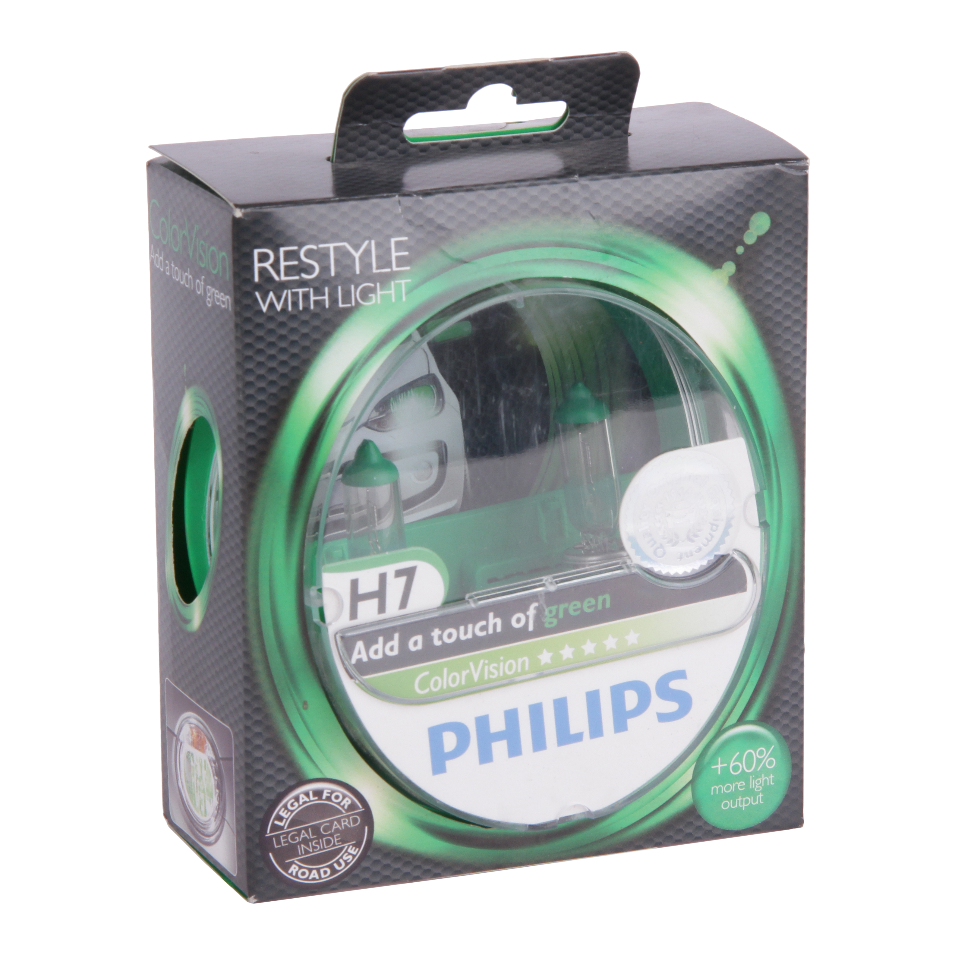 Наименование:Лампа Philips 12-55 Вт. H7 ColorVision Green галогеновая зелёная, комлект 2 шт. (PX26d) 12972CVPGS2