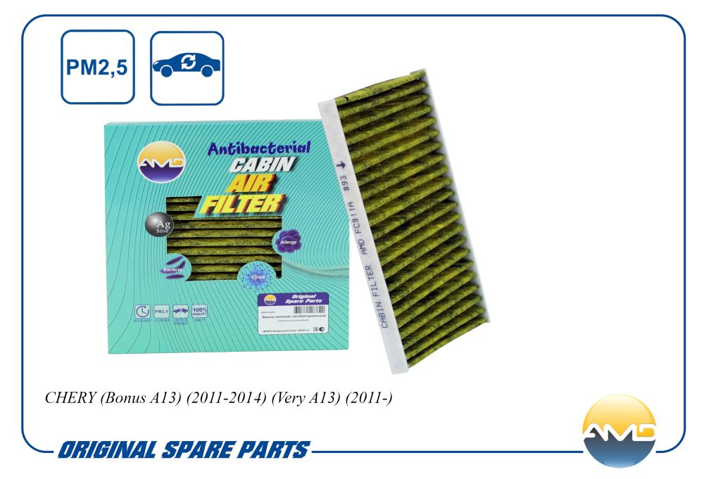 Фильтр салонный (антибактериальный, угольный) CHERY Bonus A13, 2011-2014, Very A13, 2011-, CA AMDFC911A