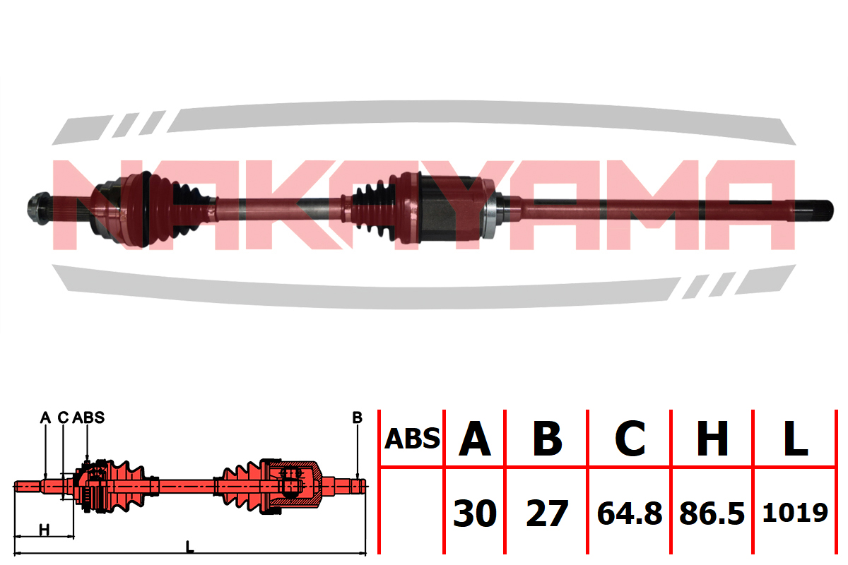 Наименование: Вал приводной, перед. правый BMW X5 II (E70, E70N), X6 (E71,E72) 07- (30x27x1019x64.8)
