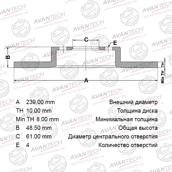Наименование:Диск тормозной задний AVANTECH