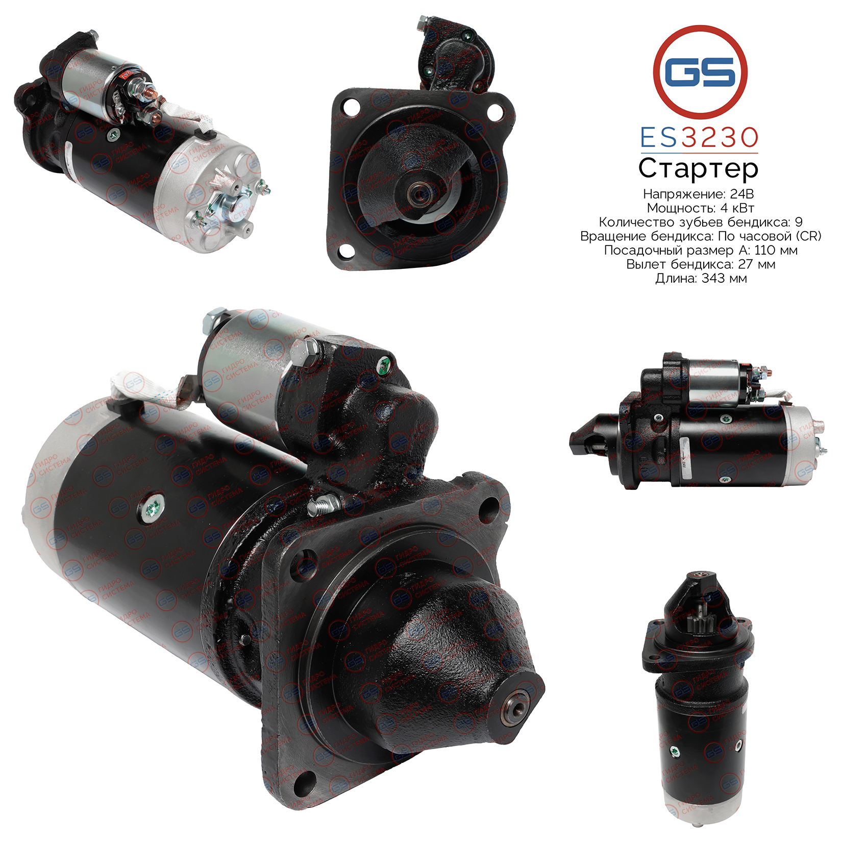 Наименование: Стартер 24В, 4 кВт, pcs 9, CR - Fiatallis 65B 1986-2001