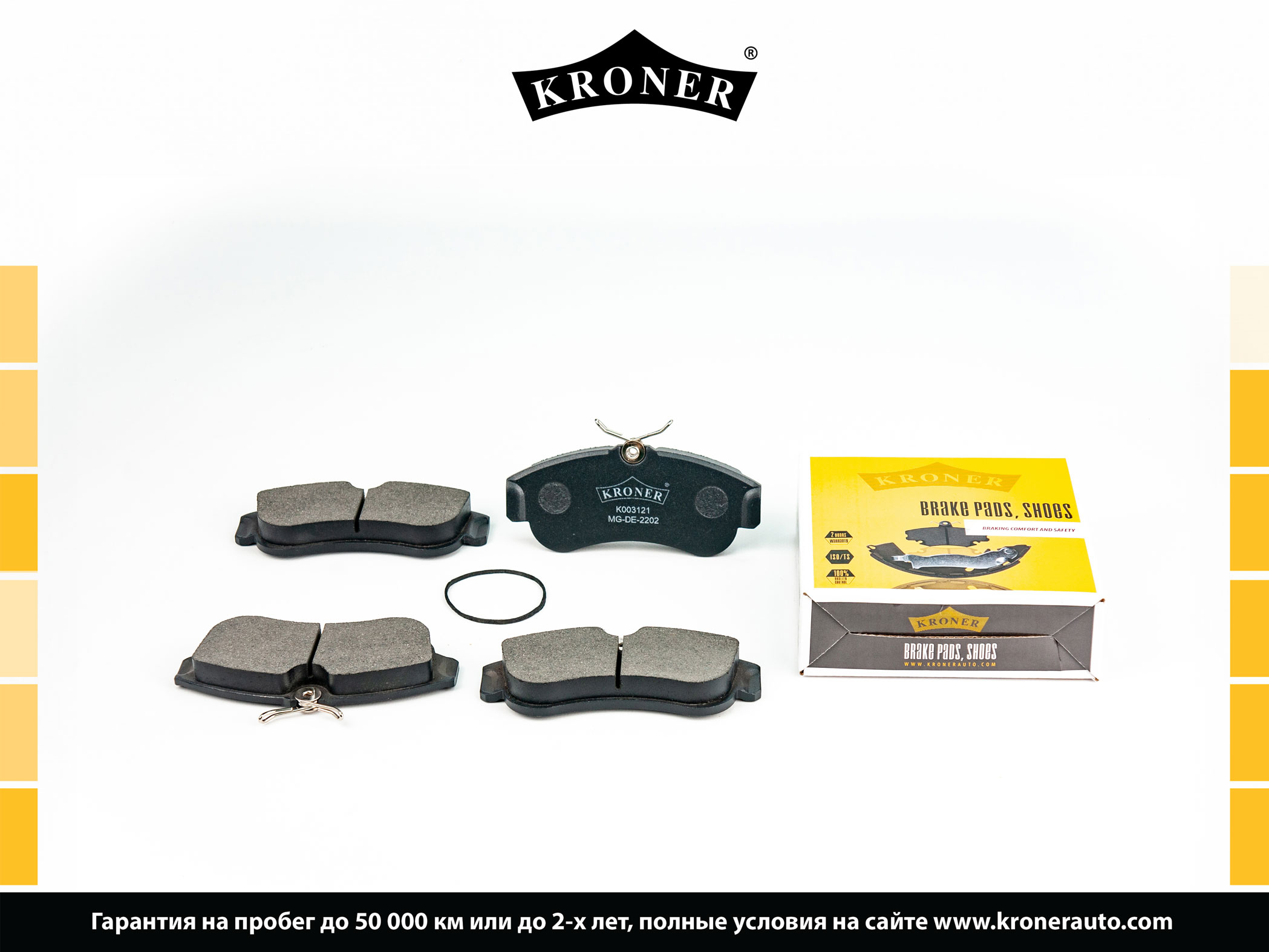 На автозапчасти KRONER распространяется гарантия на пробег 50 000 км или на 2 года.