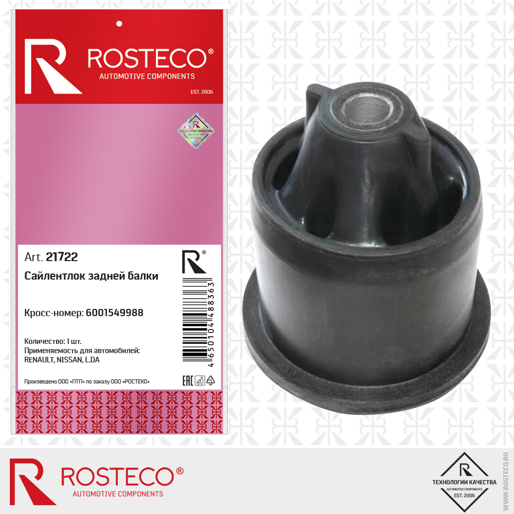 Наименование: Сайлентблок балки LADA Largus, RENAULT, NISSAN, задней. 6001549988 'ROSTECO'