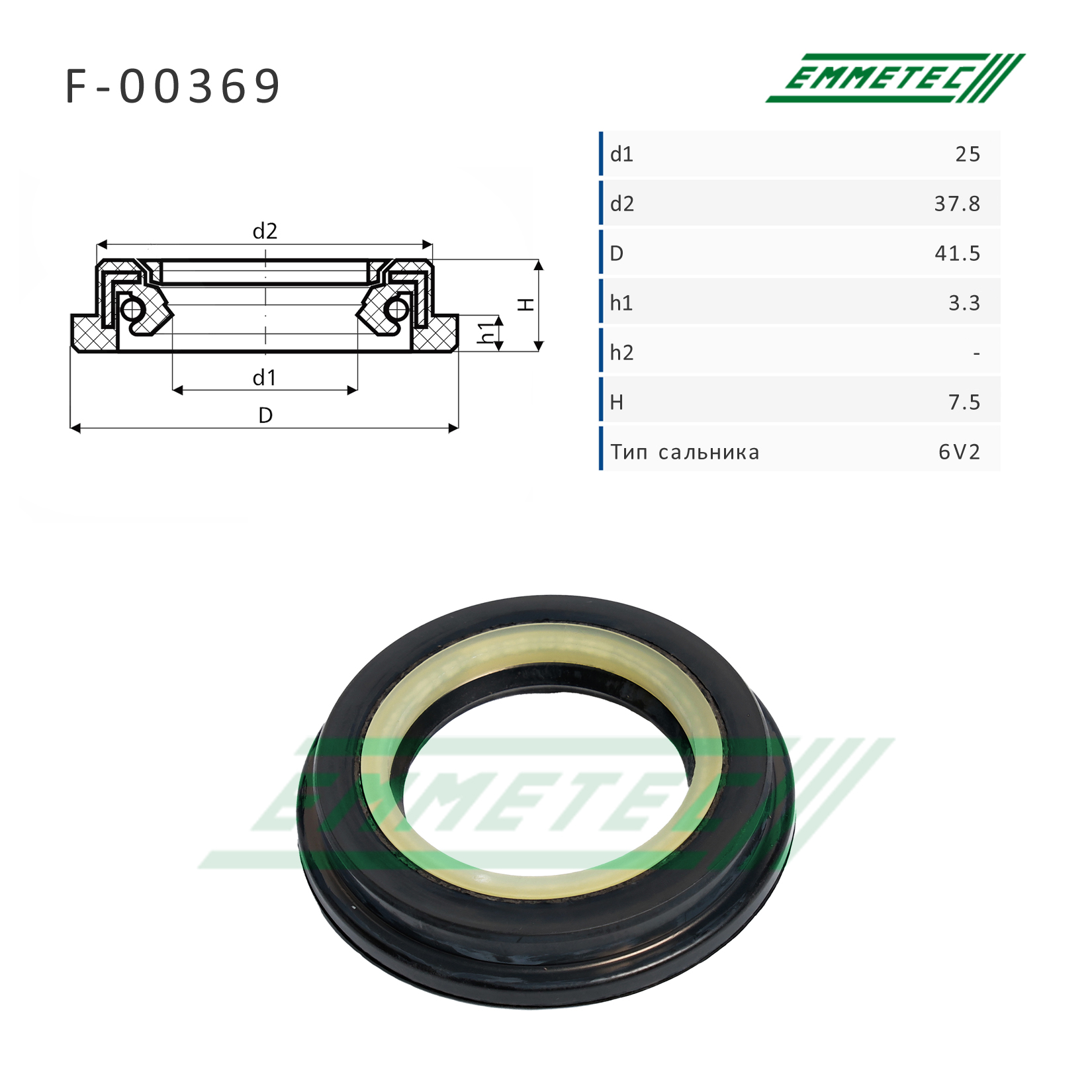 Сальник рулевой рейки 25x37.8/41.5x3.3/7.5 (6V2)