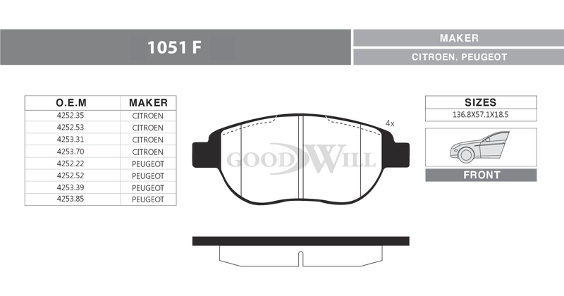 Наименование: Колодки тормозные передние GOODWILL арт.1051F