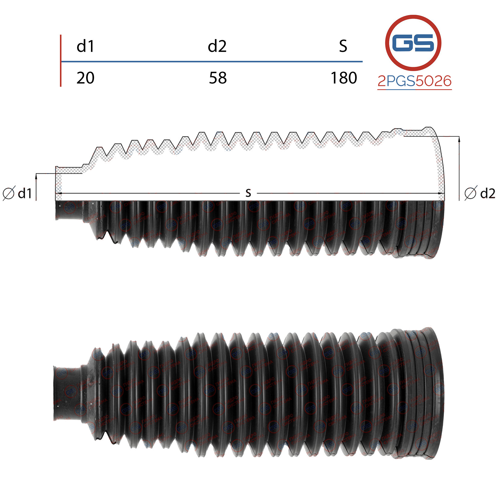 Наименование: Пыльник рулевой рейки размер: 20x58x180