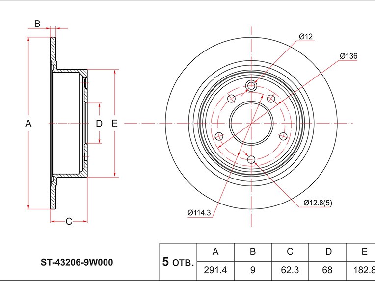 Наименование: Диск тормозной (Зад) Nissan Juke 10-20 / Qashqai 06-13 / Serena 10-22 / Teana 03-20