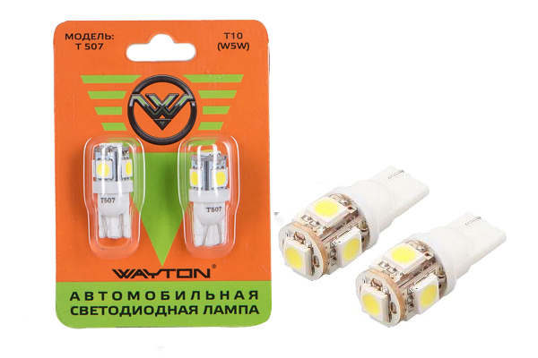 Наименование: T507 Т10(W5W) 5 светодиодов (ярк.50LM) 12V (уп.2шт)