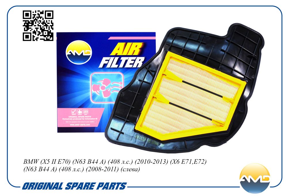 Наименование: Фильтр воздушный BMW X5 II E70, N63 B44 A, 408 л.с., 2010-2013, X6 E71,E72, N63 B44 A, 408 л.с., 2008-2011, слева AMDFA443