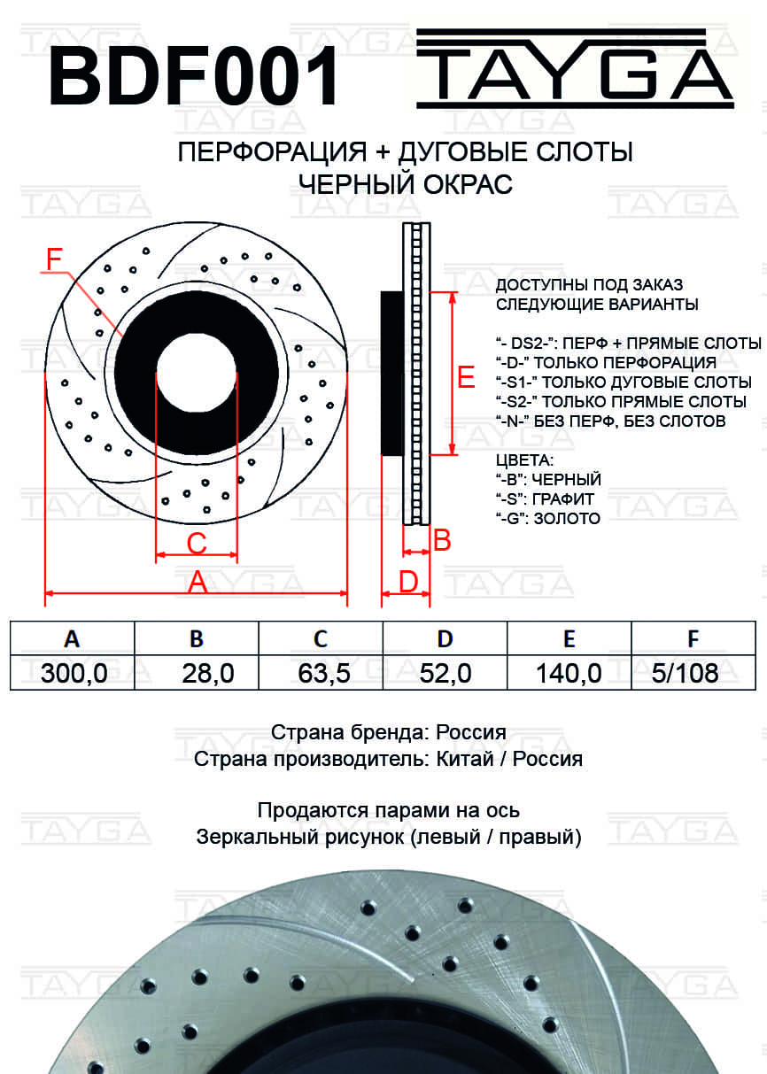 Наименование: Диск тормозной FORD Galaxy (06-),S-Max (06-) передний перфорированный комплект TAYGA