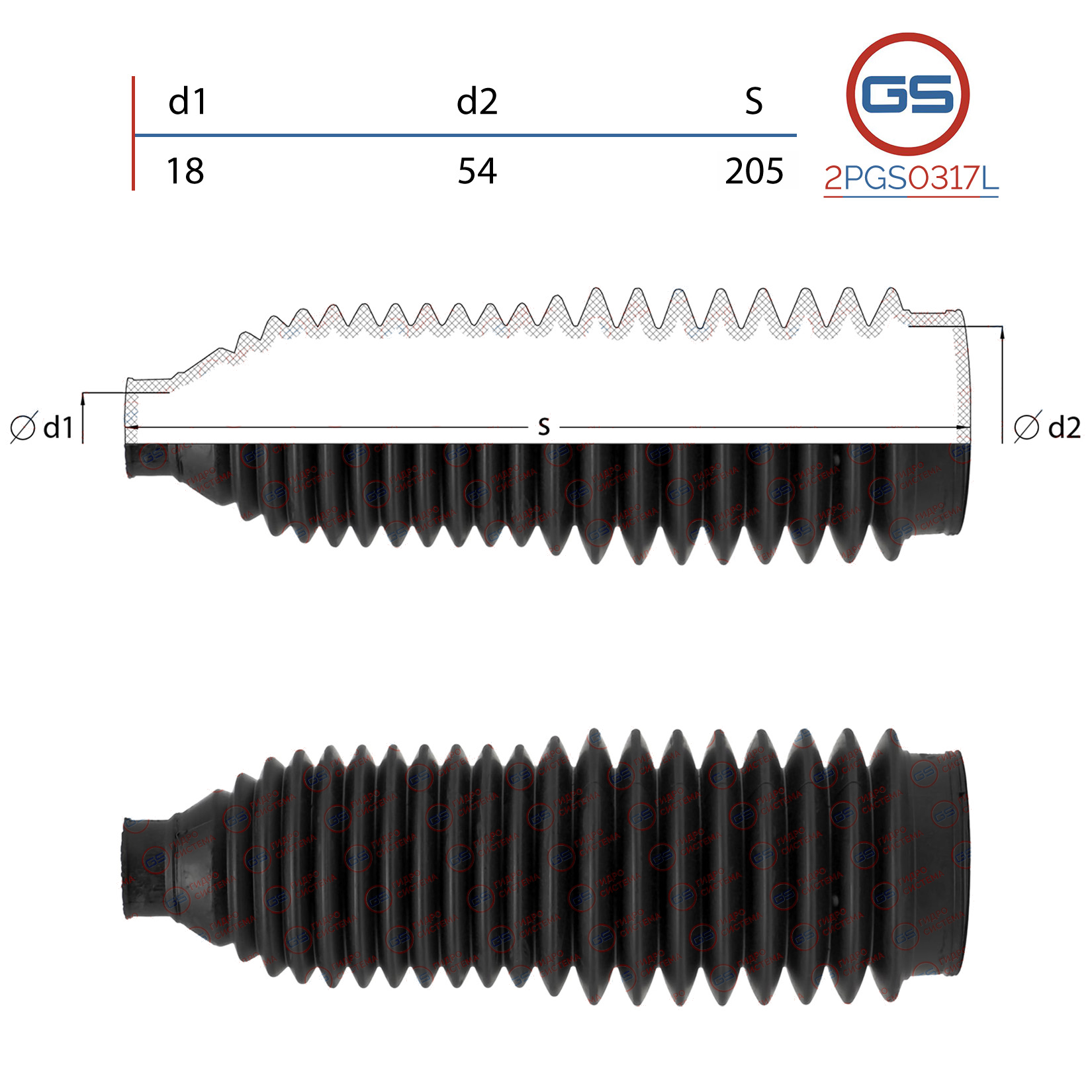 Наименование: Пыльник рулевой рейки размер: 18x54x205