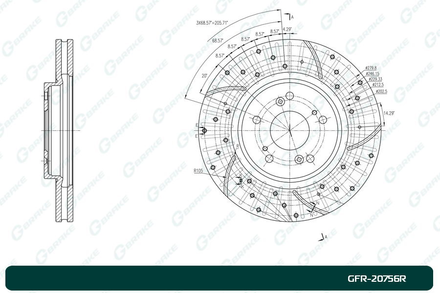 Наименование: GFR20756R G-BRAKE Диск тормозной перфорированный вентилируемый G-brake GFR-20756R правый
