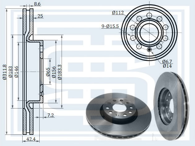 Диск торм. AUDI A3/VW GOLF V/ JETTAIII/PASSAT 1.6-2.0 2003=>