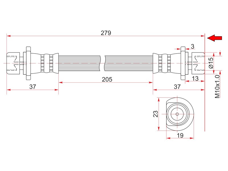 Шланг тормозной задний (Таиланд) HONDA CIVIC/PARTNER/INTEGRA/DOMANI/ISUZU JEMENI 91-01 промежуточный