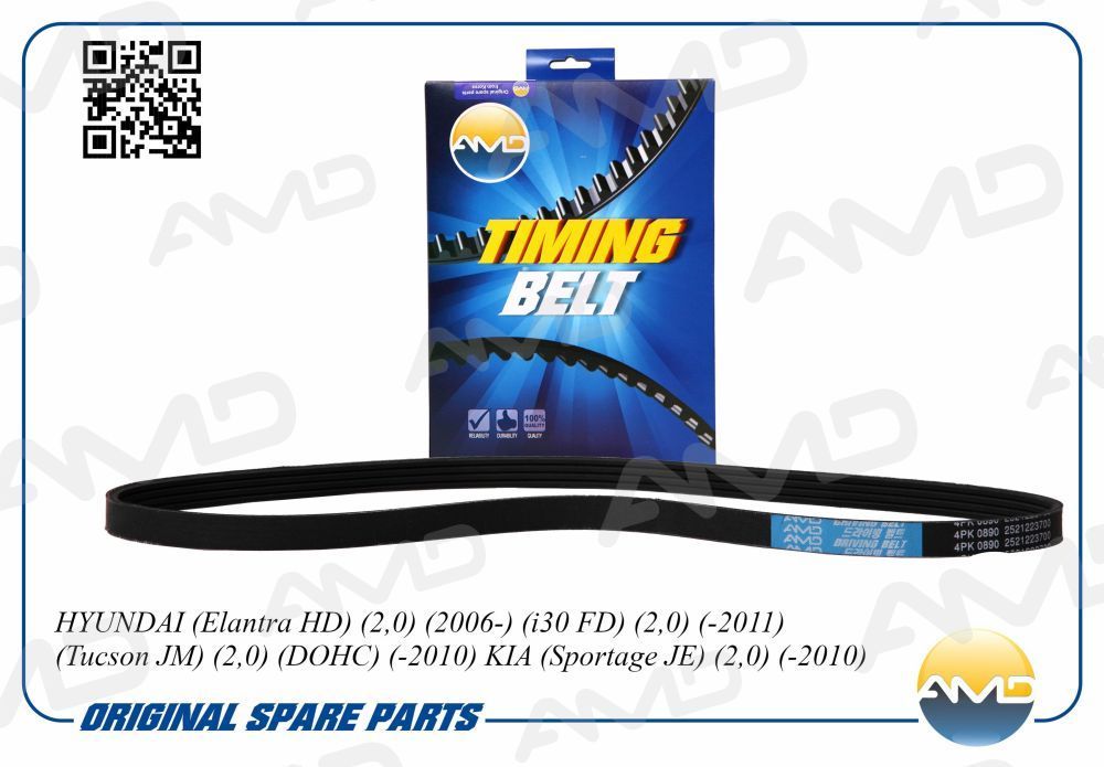Ремень поликлиновой генератора HYUNDAI Elantra HD, 2,0, 2006-, i30 FD, 2,0, -2011, Tucson JM, 2,0, DOHC, -2010, KIA Sportage JE, 2,0, -2010 AMDBL131