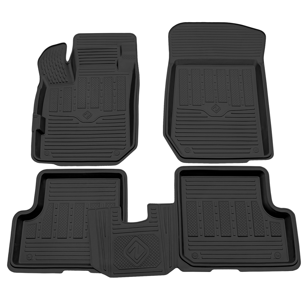 На переднем коврике водителя имеется специальный язычок, который надежно закрывает площадку отдыха ноги водителя. Задние коврики надежно соединены перемычкой, которая дополнительно защищает салон автомобиля при нахождении пассажиров на заднем сиденье. Задние коврики специально разработаны в двух вариантах: с литой перемычкой и целиковые. Коврики предназначены для использования в самых тяжелых климатических условиях.